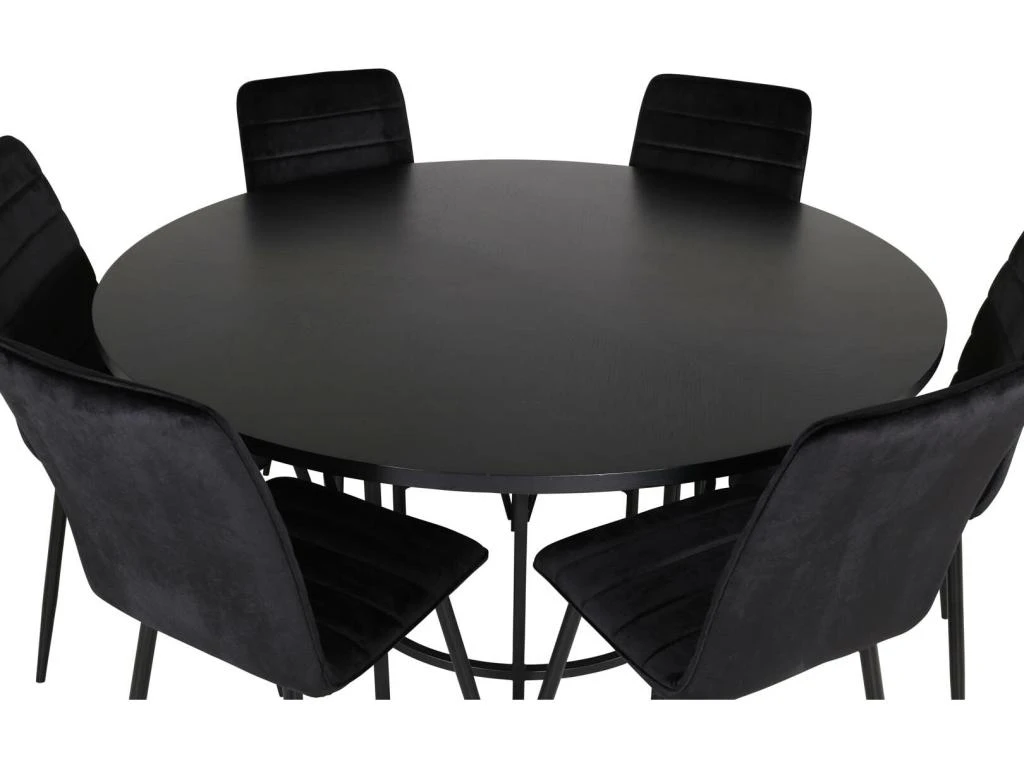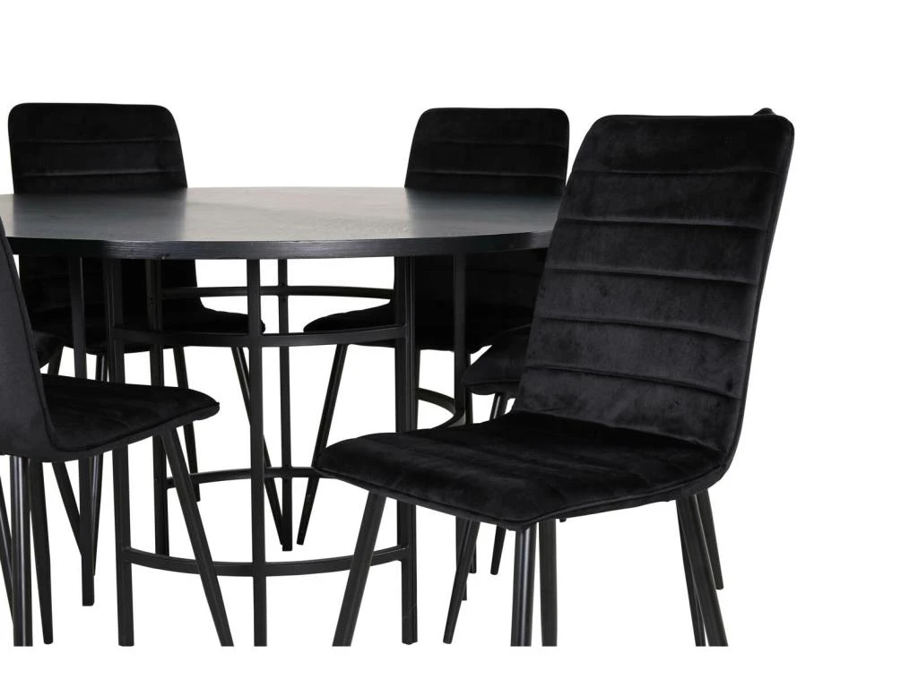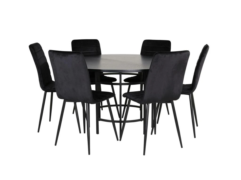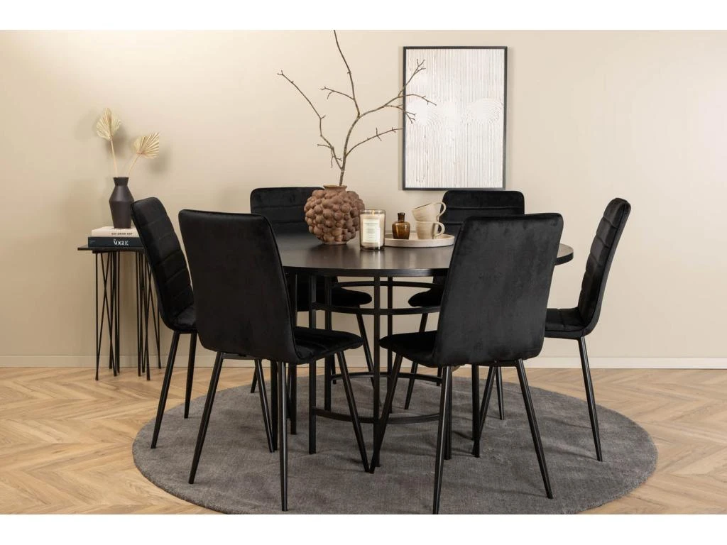 PiazzaBLBL Ensemble Table, Table Noir Et 6 Pippi Chaises Velours Noir.
