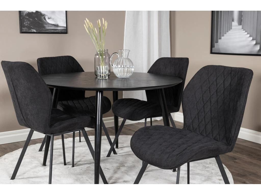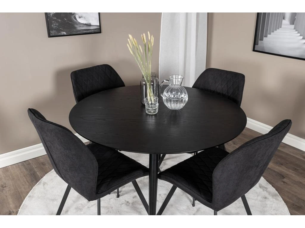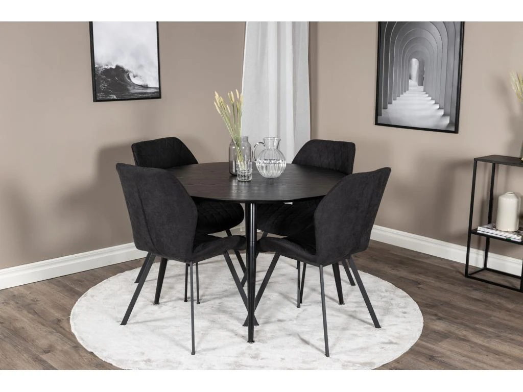 PiazzaBLBL Ensemble Table, Table Noir Et 6 Pippi Chaises Velours Noir.