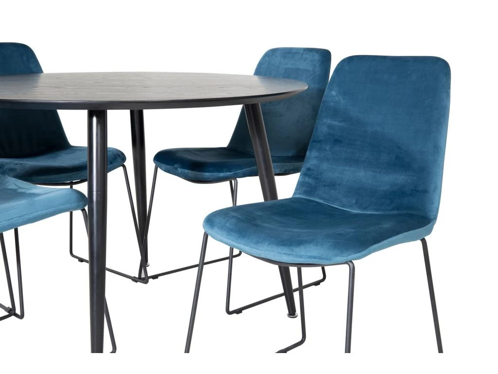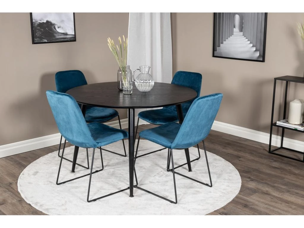 DippØ115BLBL Ensemble Table, Table Noir Et 4 Berit Chaises Velours Noir.