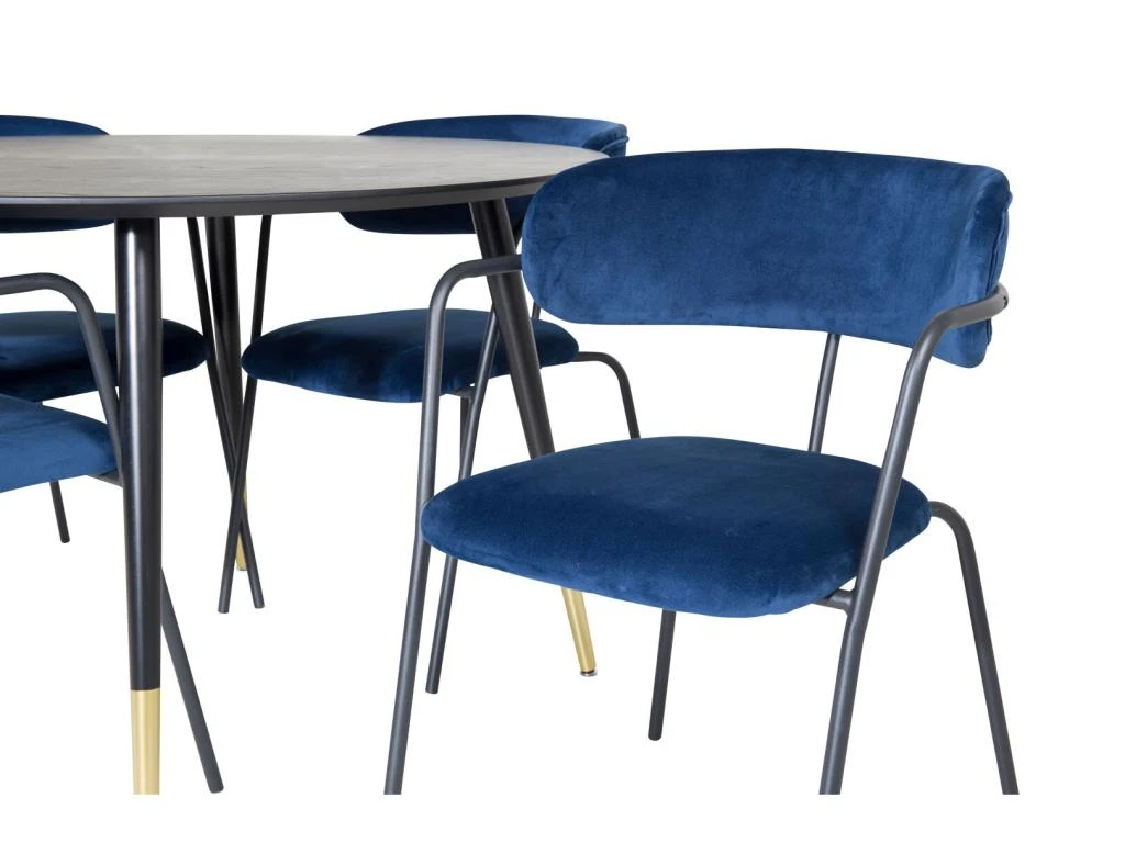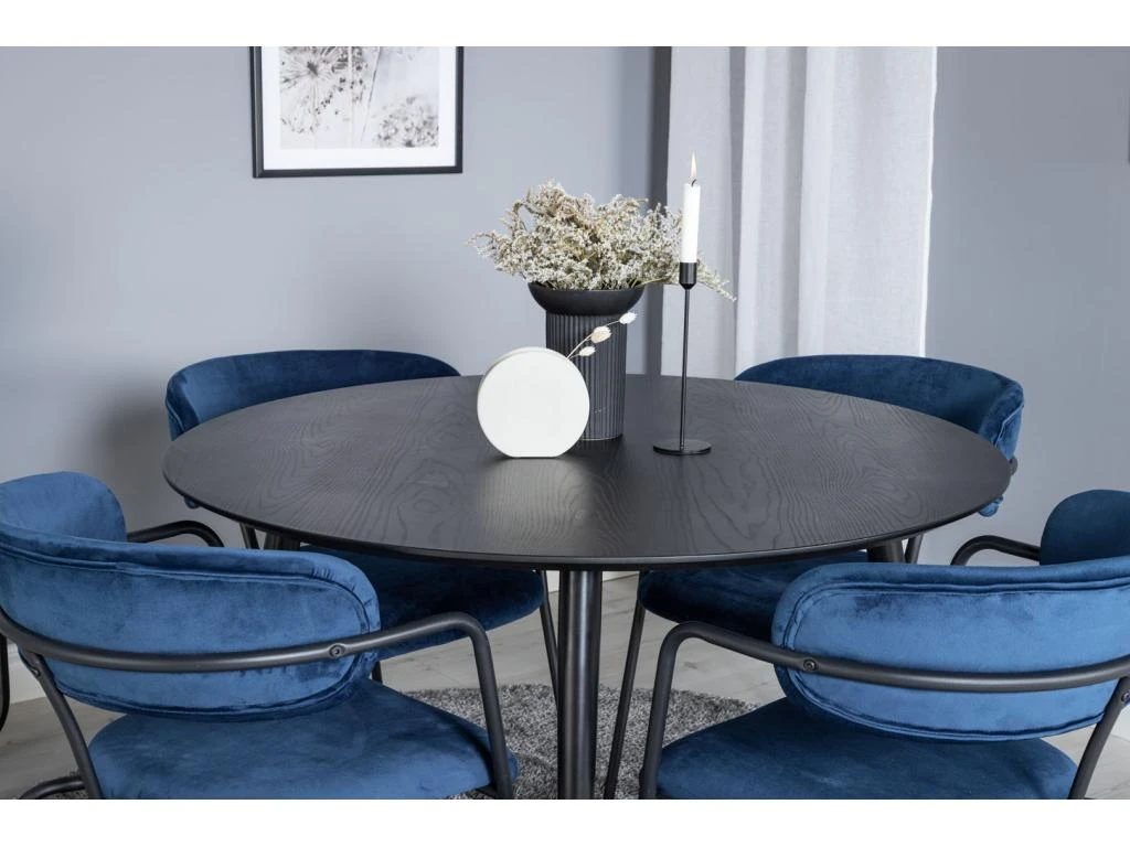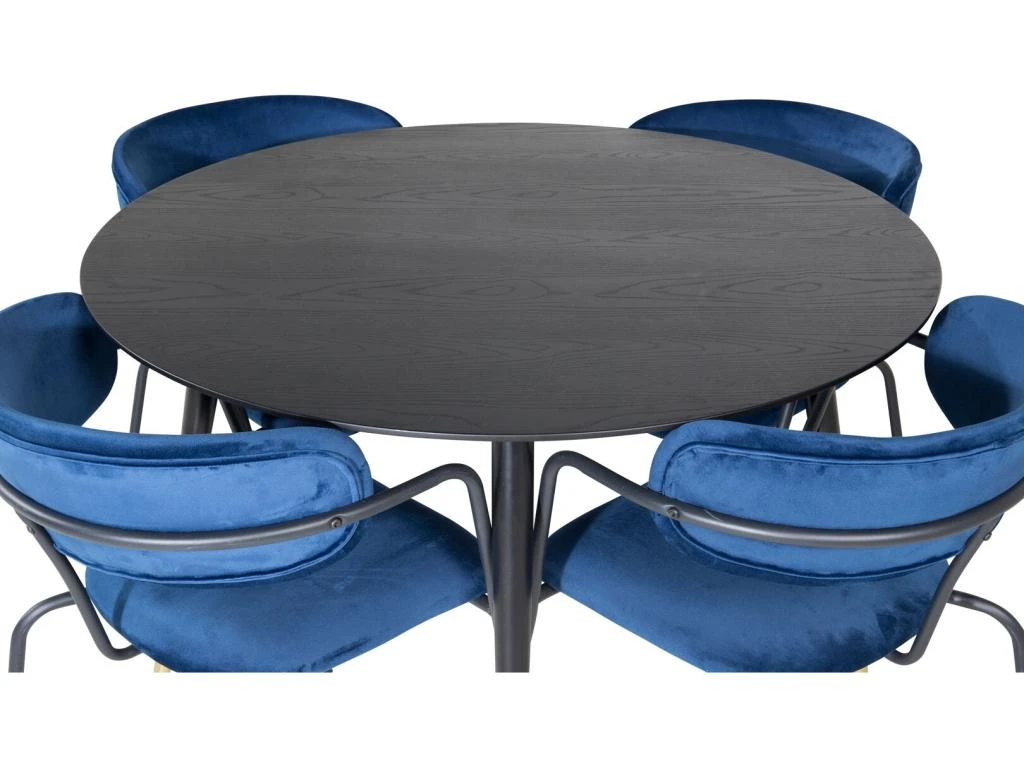 DippØ115BLBL Ensemble Table, Table Noir Et 4 Berit Chaises Velours Noir.