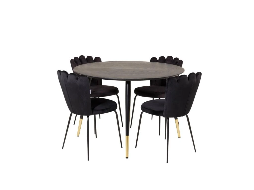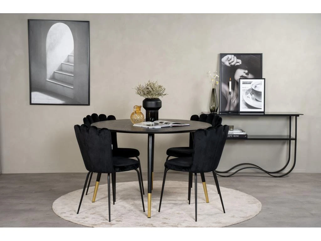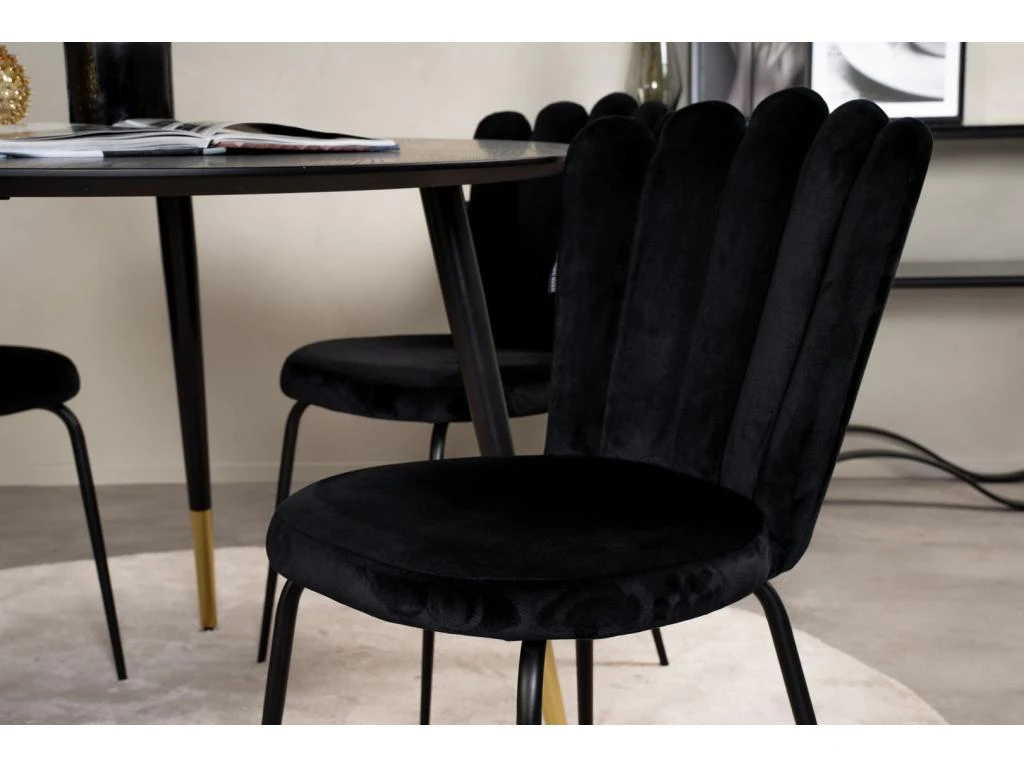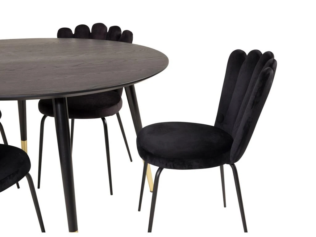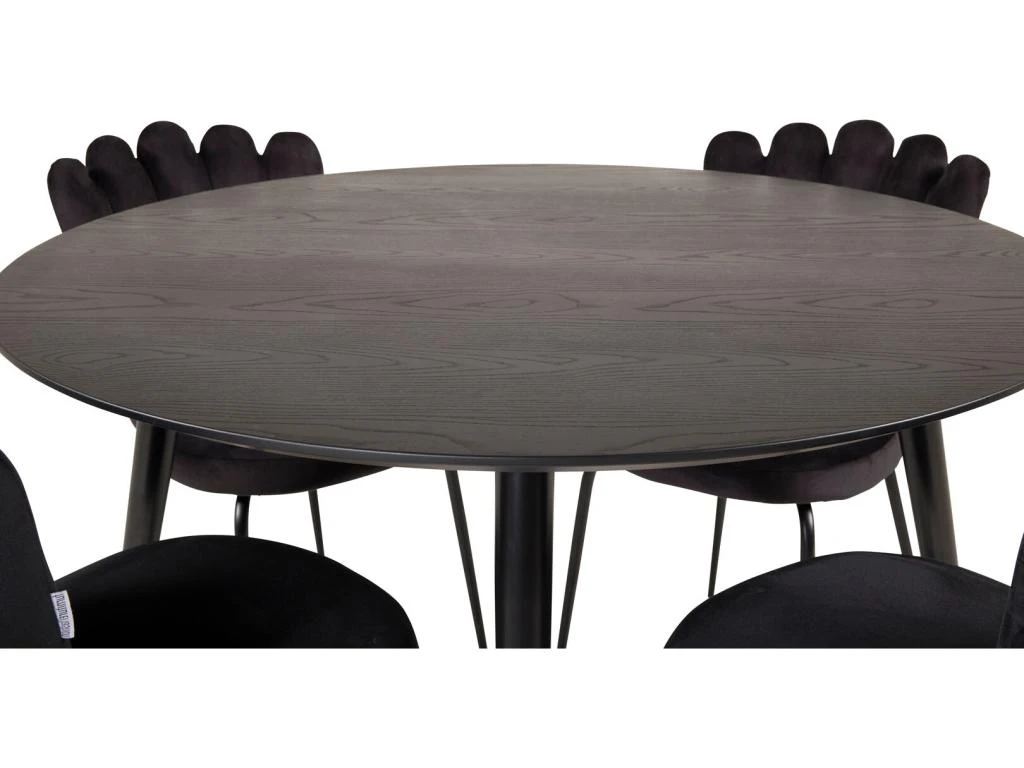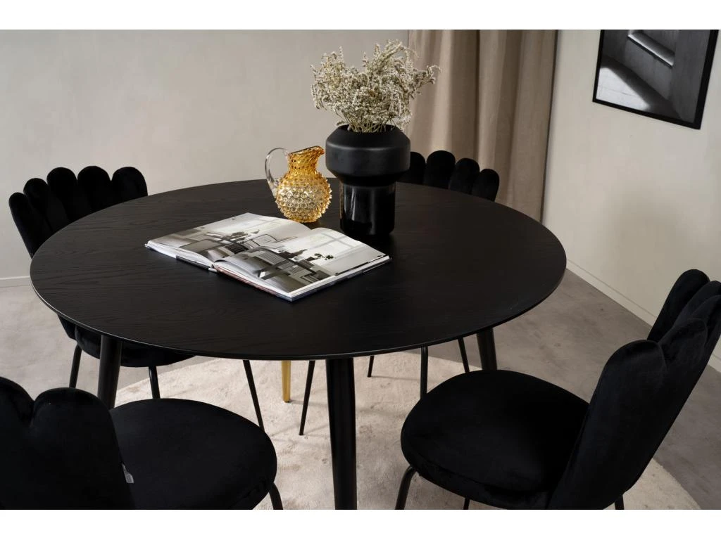 MarinaBLBL Ensemble Table, Table Noir Et 6 Polar Chaises Velours Gris.