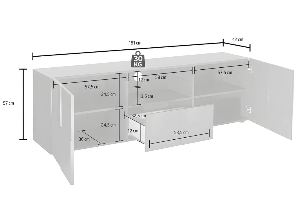Choisissez un salon totalement moderne et éclairé grâce aux LEDs du meuble TV et du buffet CALISTO ! Leur couleur pure et la finition laquée apporteront bien-être dans votre intérieur.