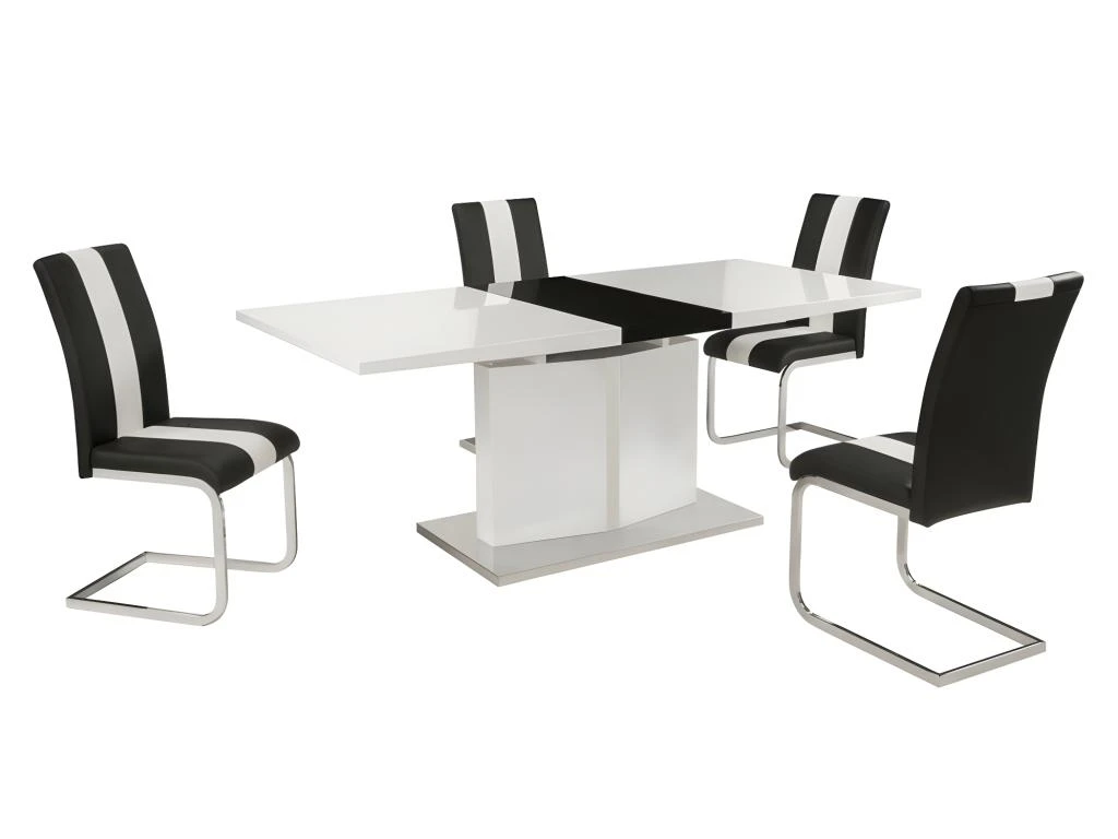 Rassemblez vos amis et votre famille autour d’un bon repas avec cet ensemble de salle Ă manger TRINITY ! RĂ©solument design et robuste grâce Ă sa structure en MDF et en acier inoxydable, la table extensible TRINITY vous permettra d’accueillir jusqu’Ă 8 convives !