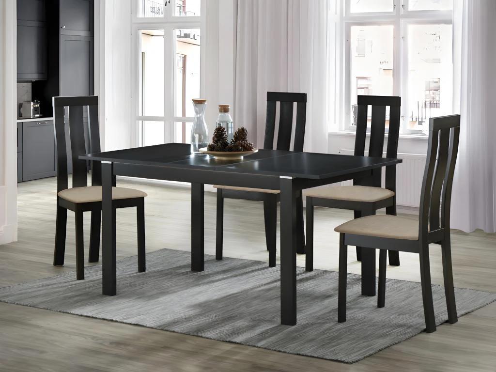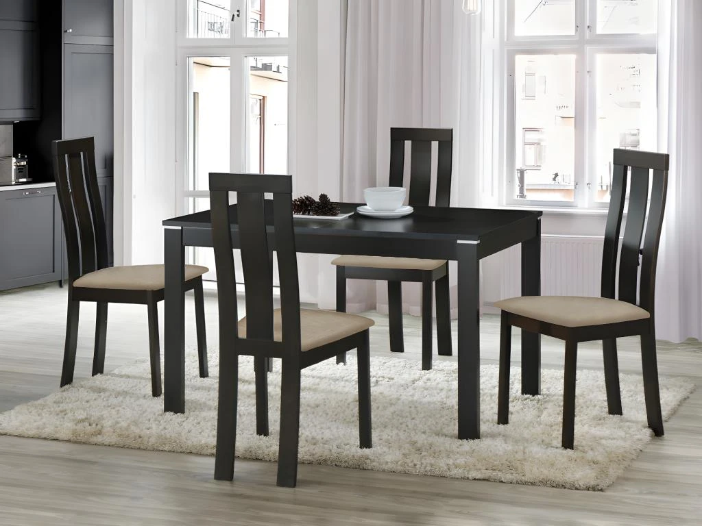 Cet ensemble contient 1 table à manger DOMINGO II et 4 chaises DOMINGO – Coloris Wengé