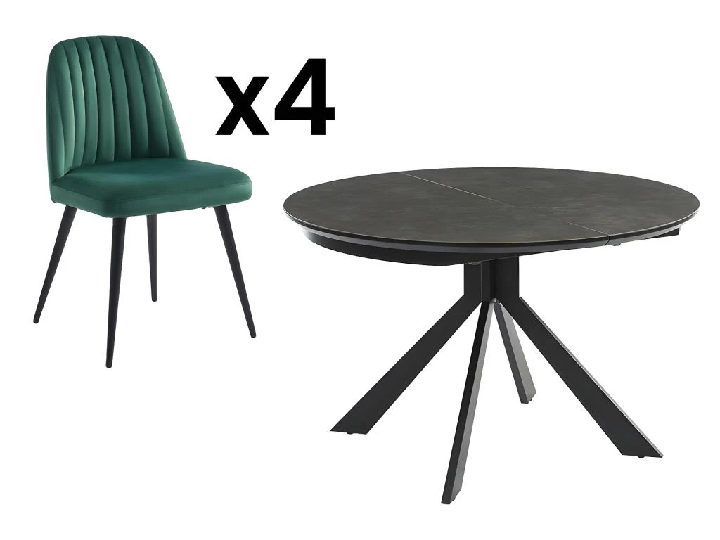 La table à manger extensible CLARA est un mélange de finesse et de sobriété, qui saura être au centre de toute l’attention avec son plateau en céramique anthracite et ses pieds croisés en métal noir. Accompagné des chaises ELEANA, cet ensemble table et chaises présentera un look très tendance aux accents rétro.