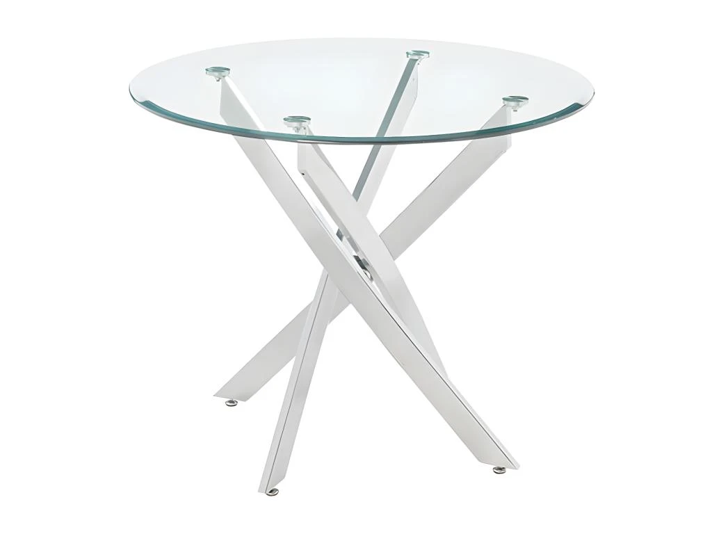La table à manger ronde COSIMA sera le lieu de rendez-vous incontournables de vos repas. Design grâce à l’alliance de son plateau en verre trempé et de ses pieds croisés en acier chromé, vous ne pourrez plus vous en passer !