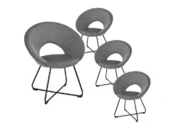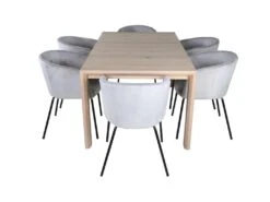 TENSO – Pack Table Allongeable Effet Bois + 4 Fauteuils Velours Côtelé Gris Konae
