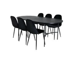 Skate Ensemble Table, Table Noir Et 6 Polar Chaises Velours Noir.