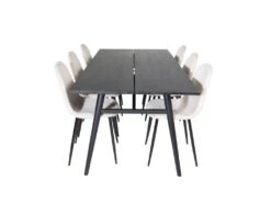 Sleek Ensemble Table, Table Extensible Longueur Cm195 / 280 Noir Et 6 Polar Chaises Velours Beige.