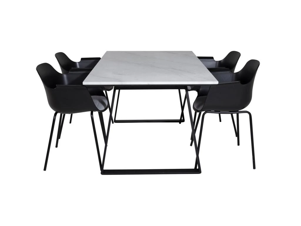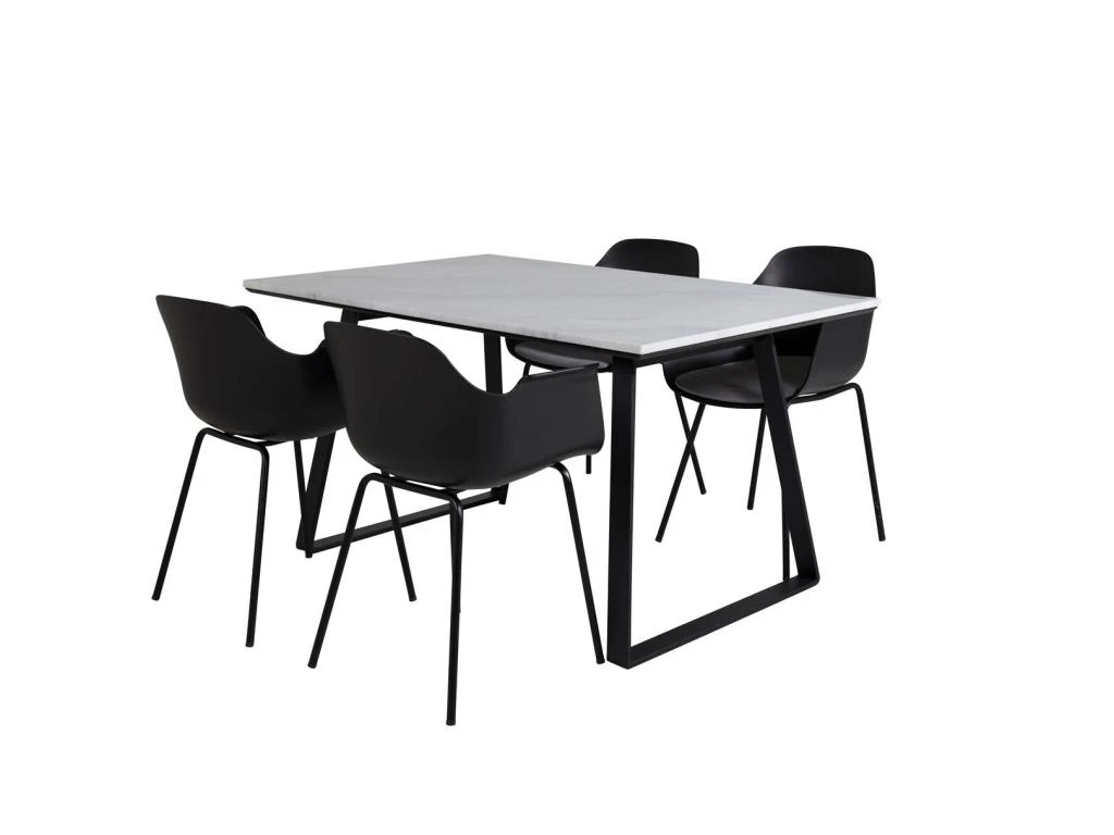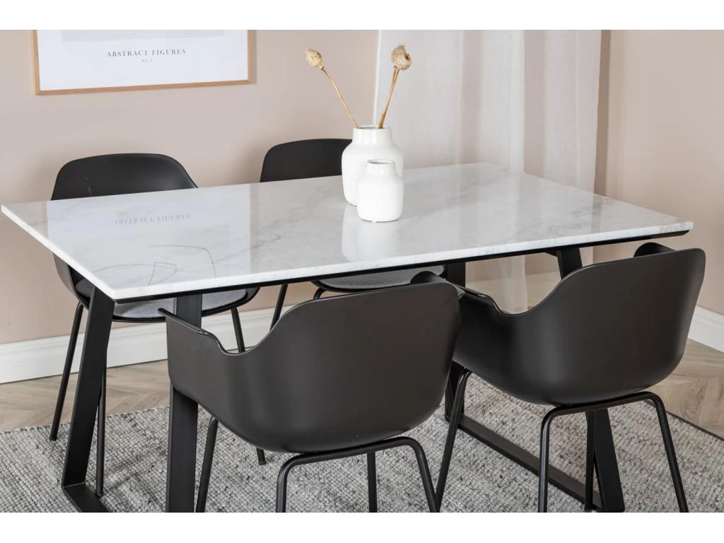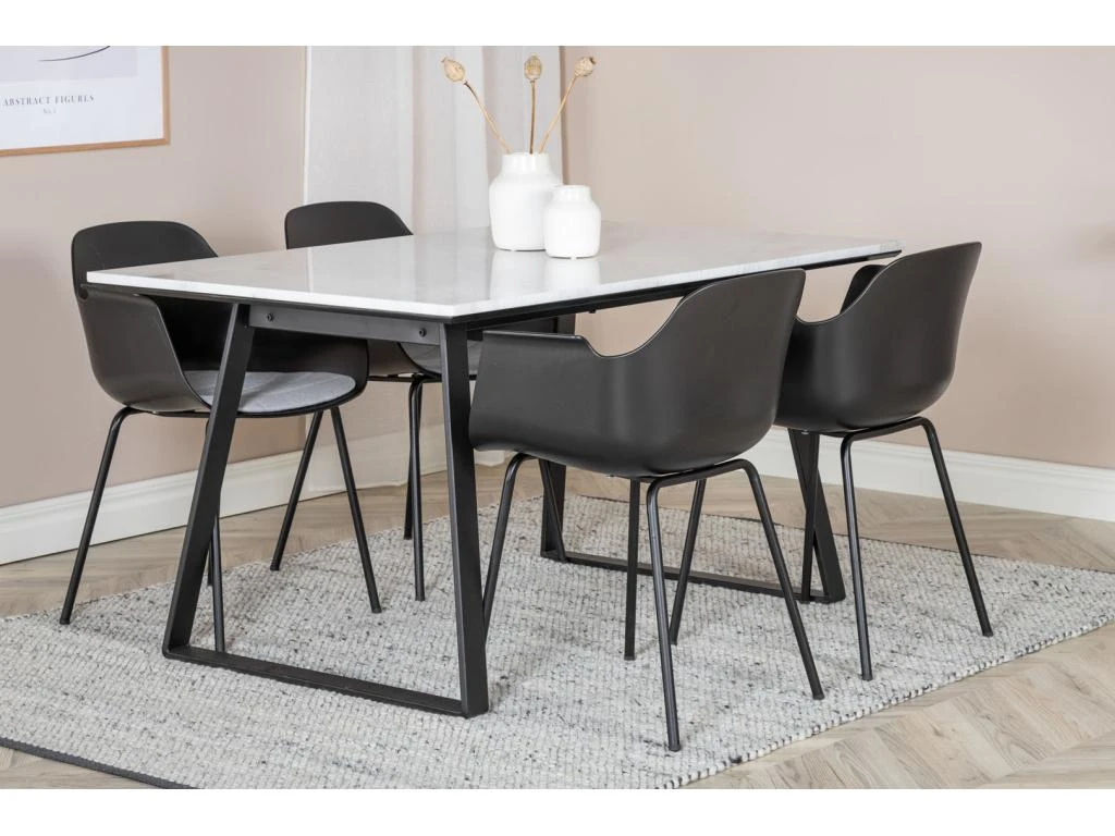 DippĂ115BLBL Ensemble Table, Table Noir Et 4 Berit Chaises Velours Noir.
