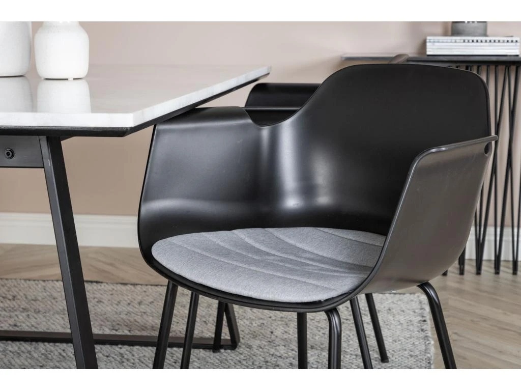 PiazzaBLBL Ensemble Table, Table Noir Et 6 Pippi Chaises Velours Noir.