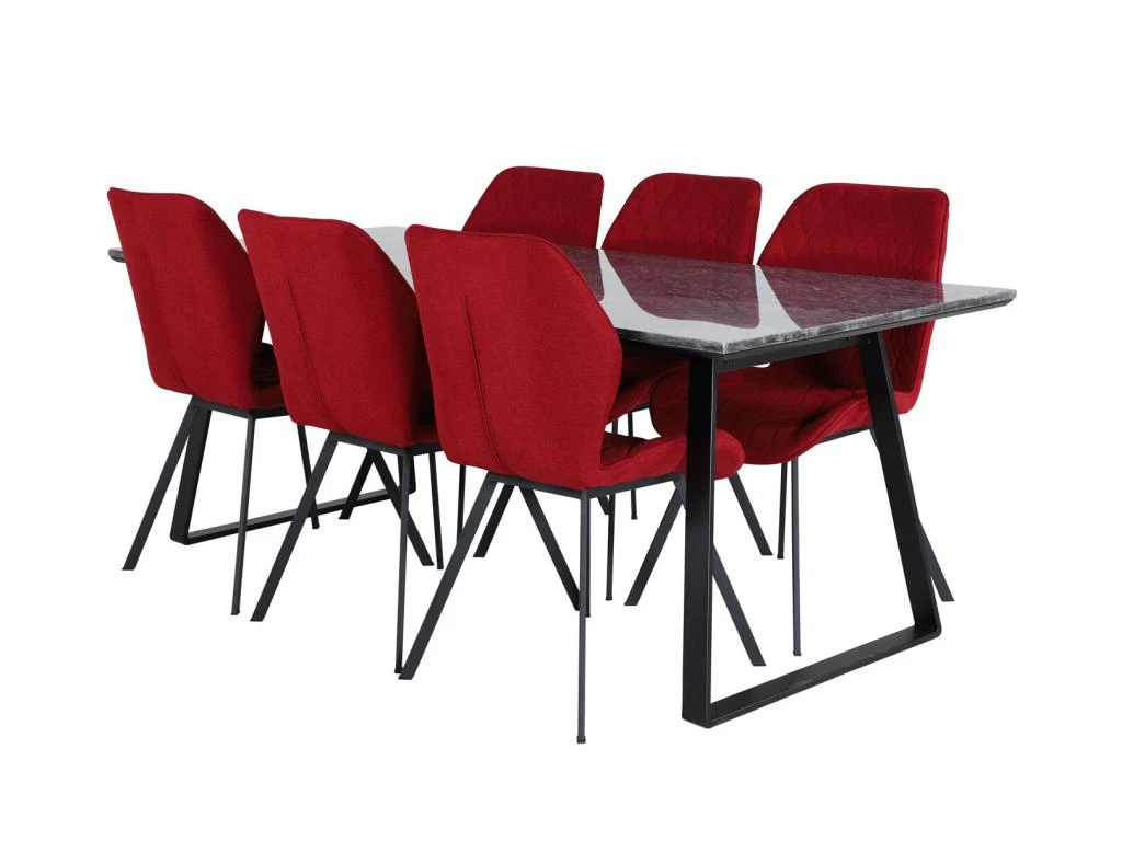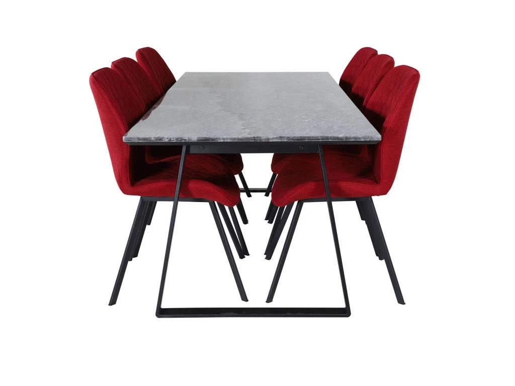 MarinaBLBL Ensemble Table, Table Noir Et 6 Polar Chaises Velours Gris.