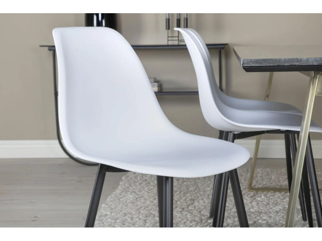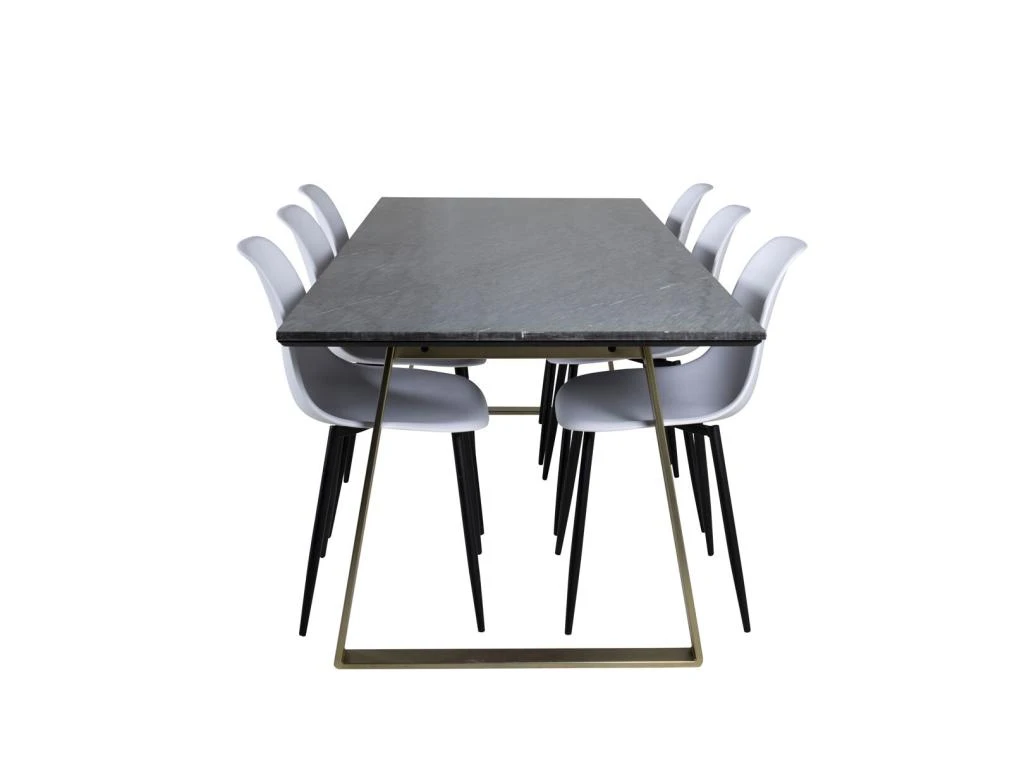 EstelleØ106BLBR Ensemble Table, Table Noir, Marbre Et 4 Velvet Deluxe Chaises Grisclair, Noir.