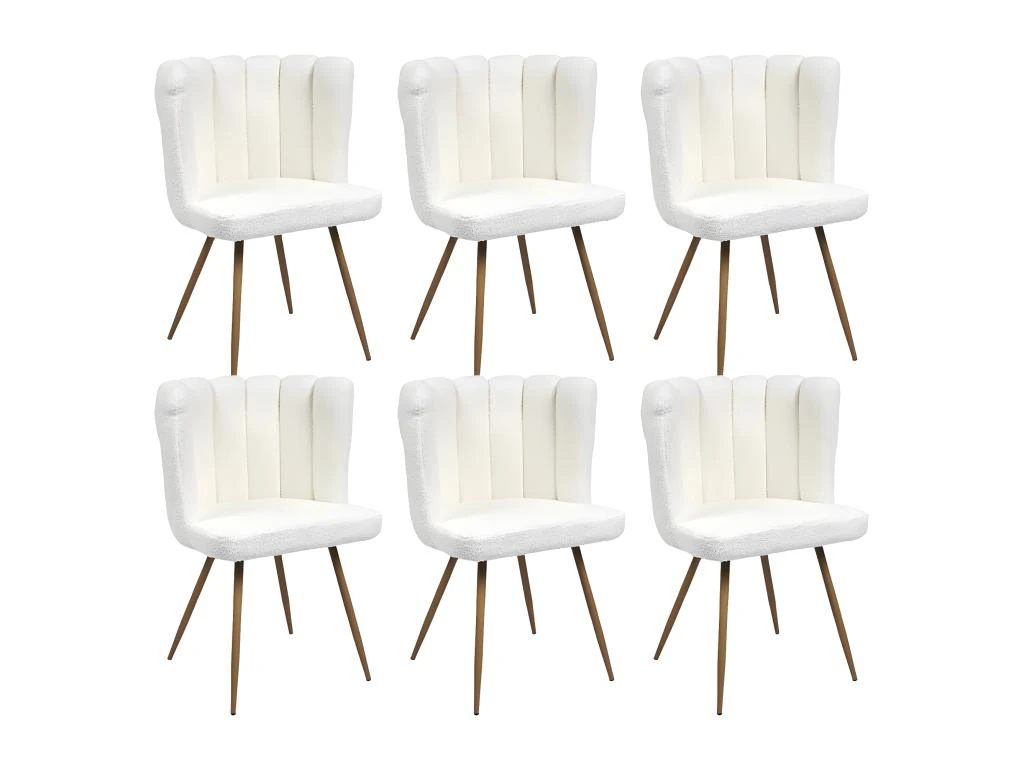 Lot de 6 Fauteuils Blanc Tissu Bouclettes de la gamme Fjard.