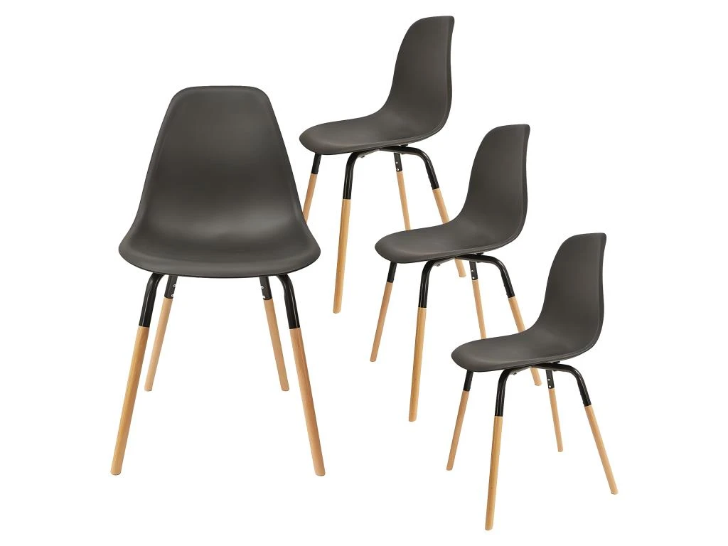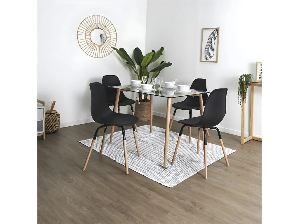 Lot de 4 Chaises Polypropylène Noir et Bois de la gamme Fluk.