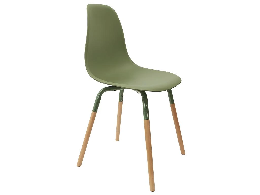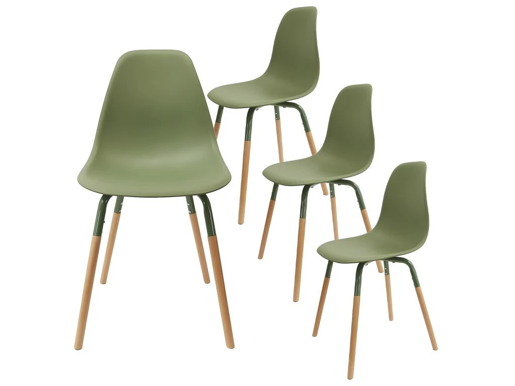 Lot de 4 Chaises Polypropylène Vert et Bois de la gamme Fluk.