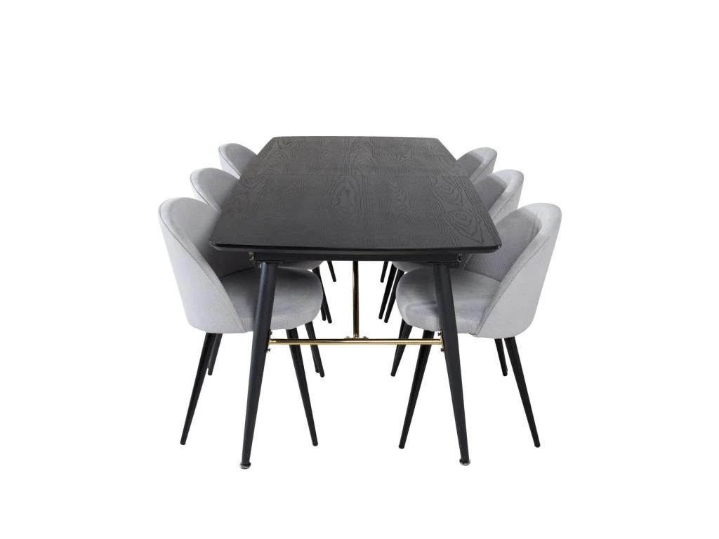 Leif Ensemble Table, Table Enfumé Verre Et 4 Emma Chaises Velours Gris,noir.