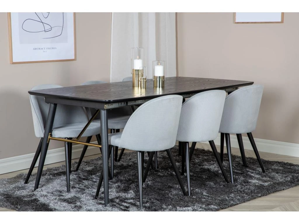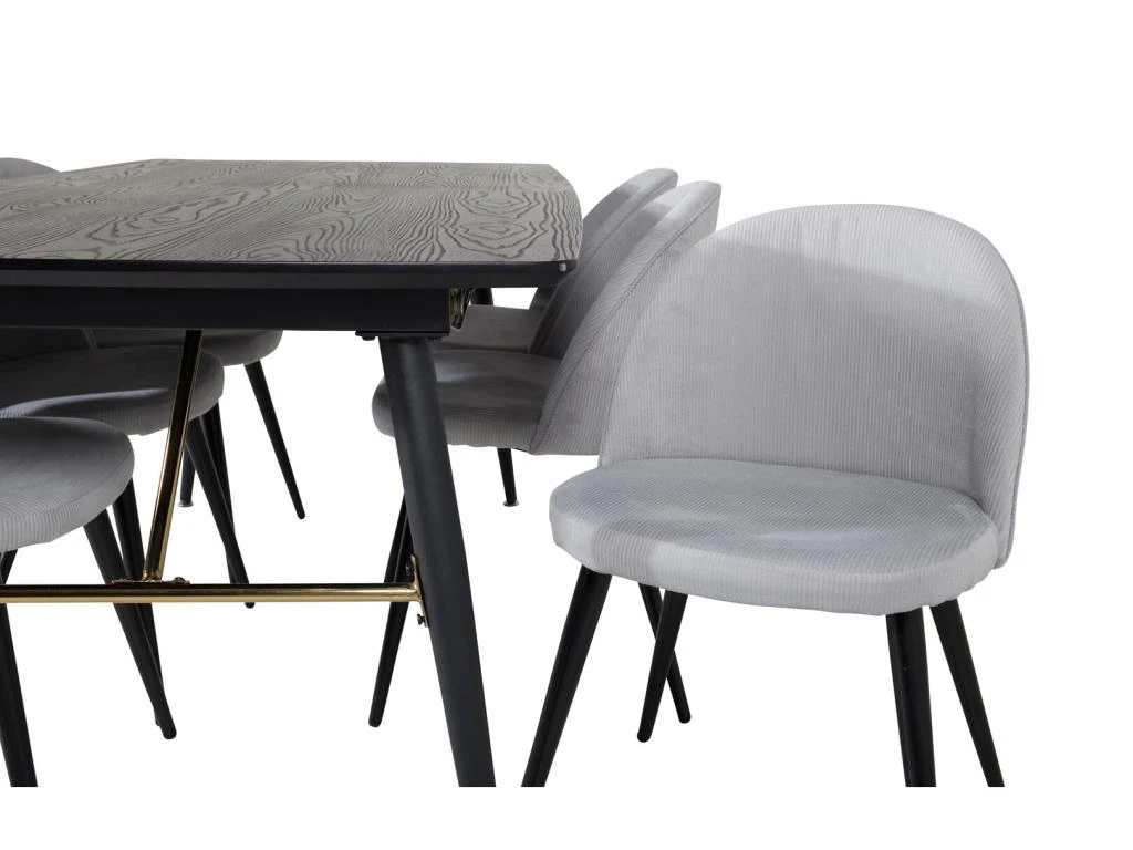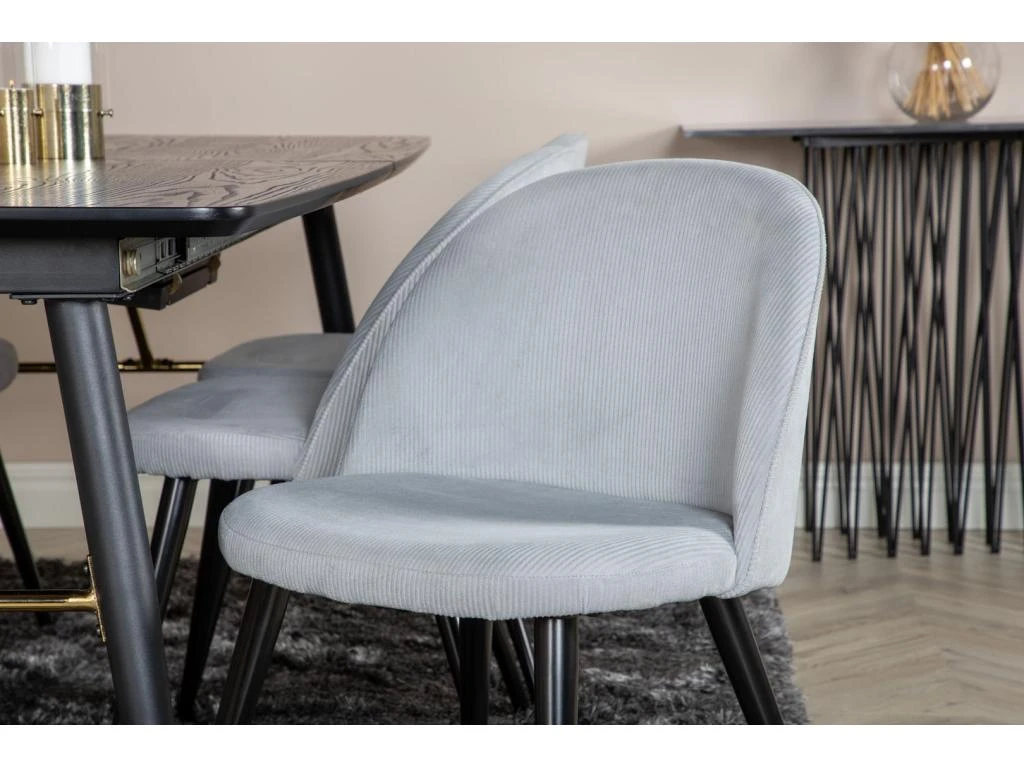 TENSO – Pack Table Allongeable Effet Bois + 4 Fauteuils Velours Côtelé Noir Konae