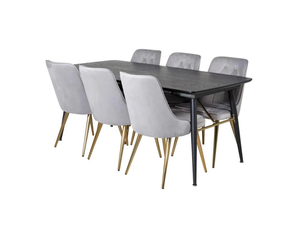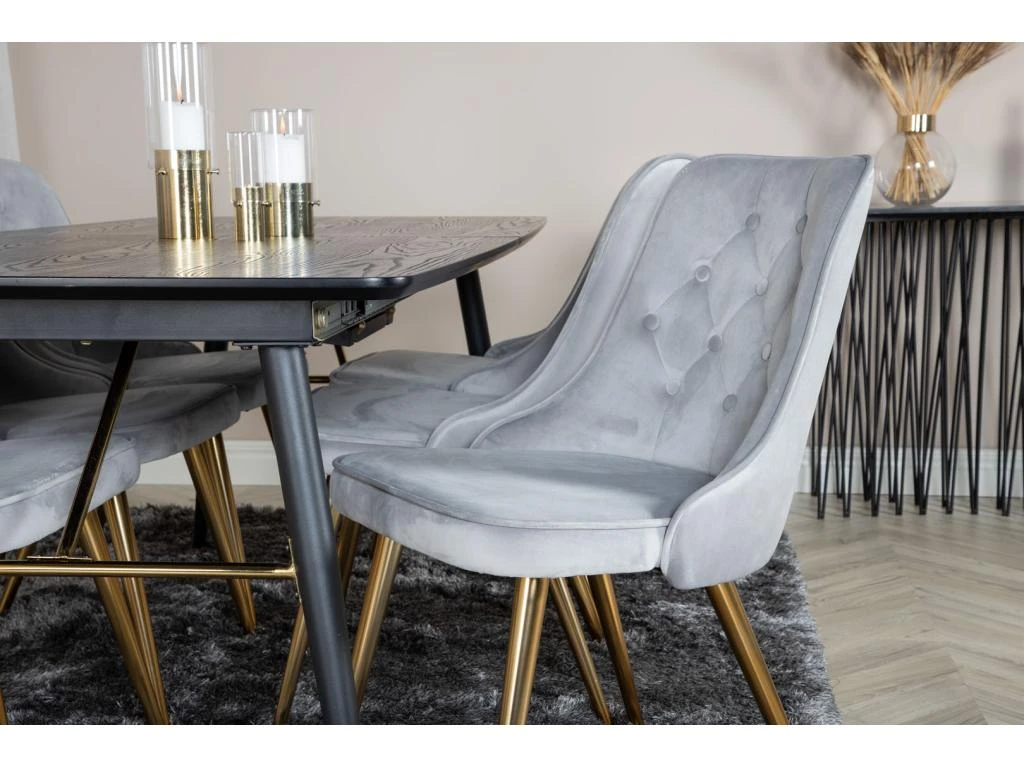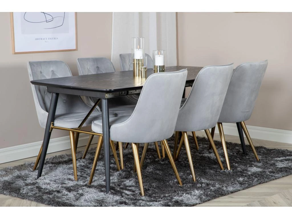 MarinaBLBL Ensemble Table, Table Noir Et 6 Polar Chaises Velours Gris.