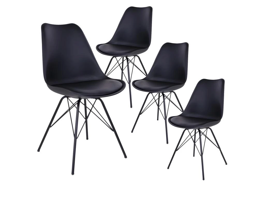 Lot de 4 Chaises Noires avec Piétement Métallique Haga.