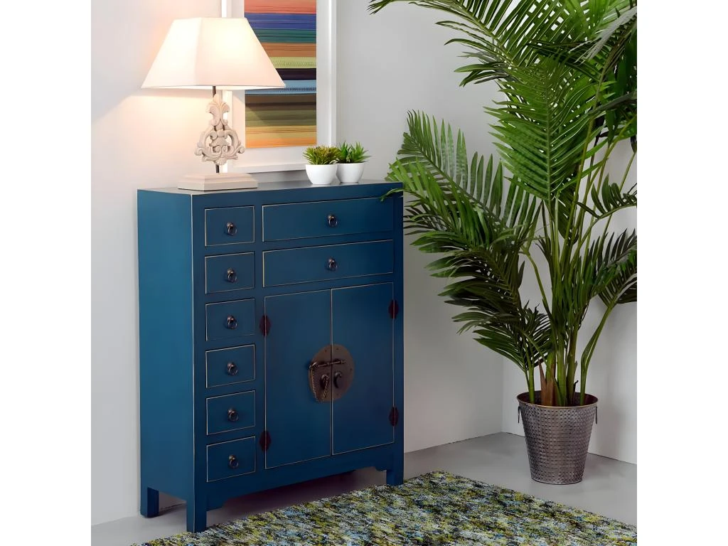 Meuble d’Entrée 2 Portes 8 Tiroirs Ivana Bleu.