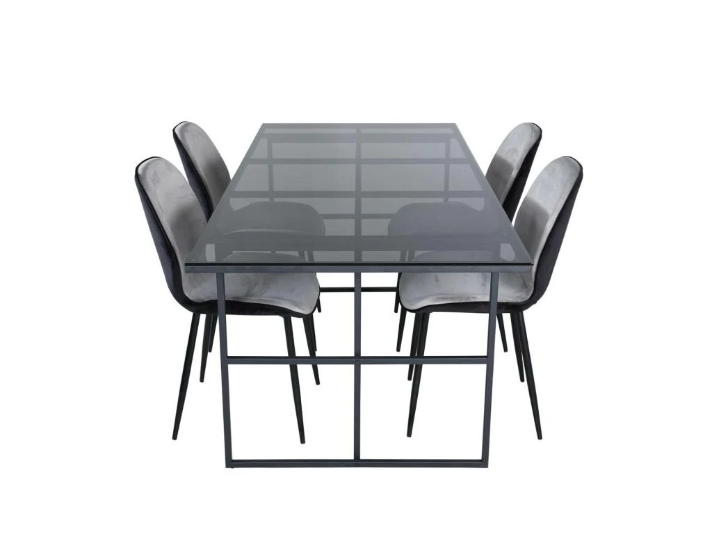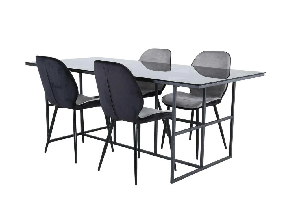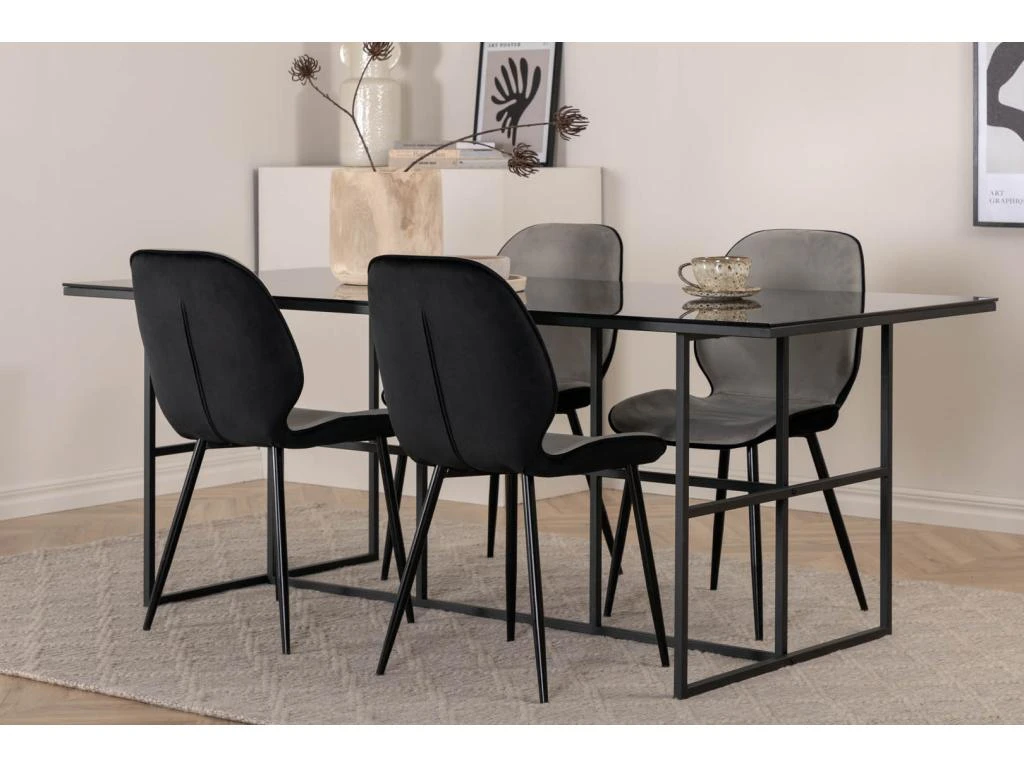 EstelleØ106BLBR Ensemble Table, Table Noir, Marbre Et 4 Velvet Deluxe Chaises Grisclair, Noir.