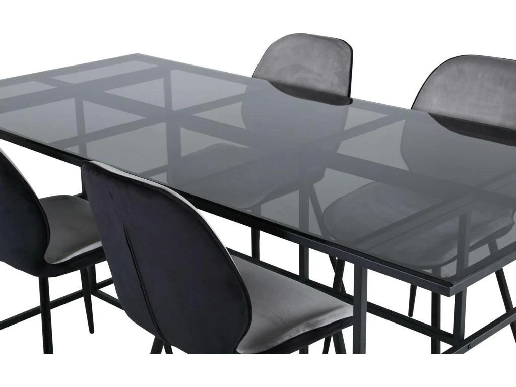 MarinaBLBL Ensemble Table, Table Noir Et 6 Polar Chaises Velours Gris.