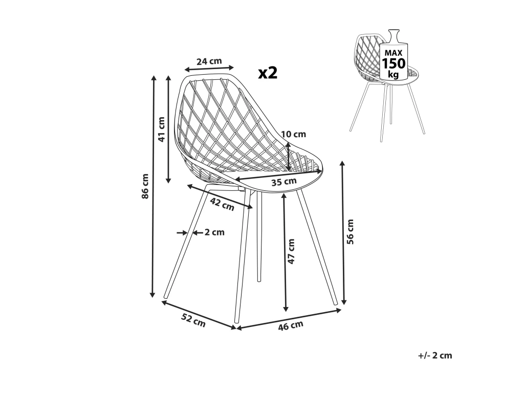Caractéristiques clés: Assise stable et confortable, En harmonie avec n’importe quel type de décoration, De haute qualité, Facile à entretenir et extrêmement durable, Patins pour le pieds assurent la protection contre les rayures
