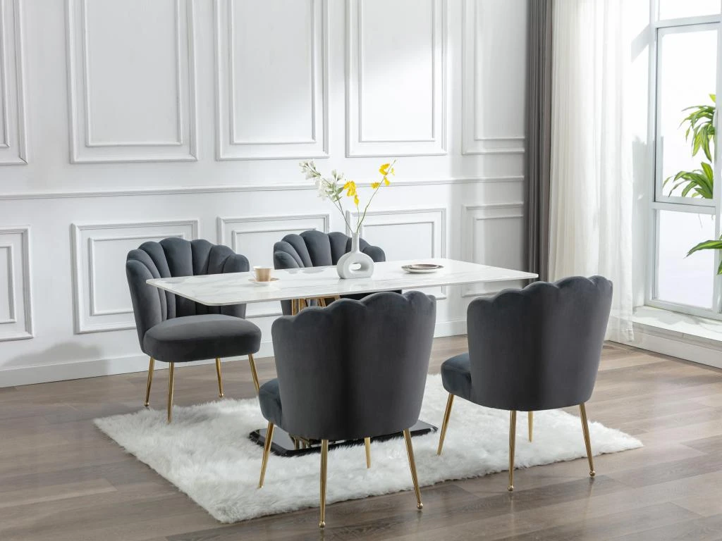 Apportez une ambiance glamour à votre séjour avec la chaise RUTY et sa forme voluptueuse. Elle dispose d’une assise en velours englobante et rembourrée et d’un piètement en métal doré. Grâce à ses lignes singulières, elle deviendra un élément de décoration à part entière dans votre intérieur.