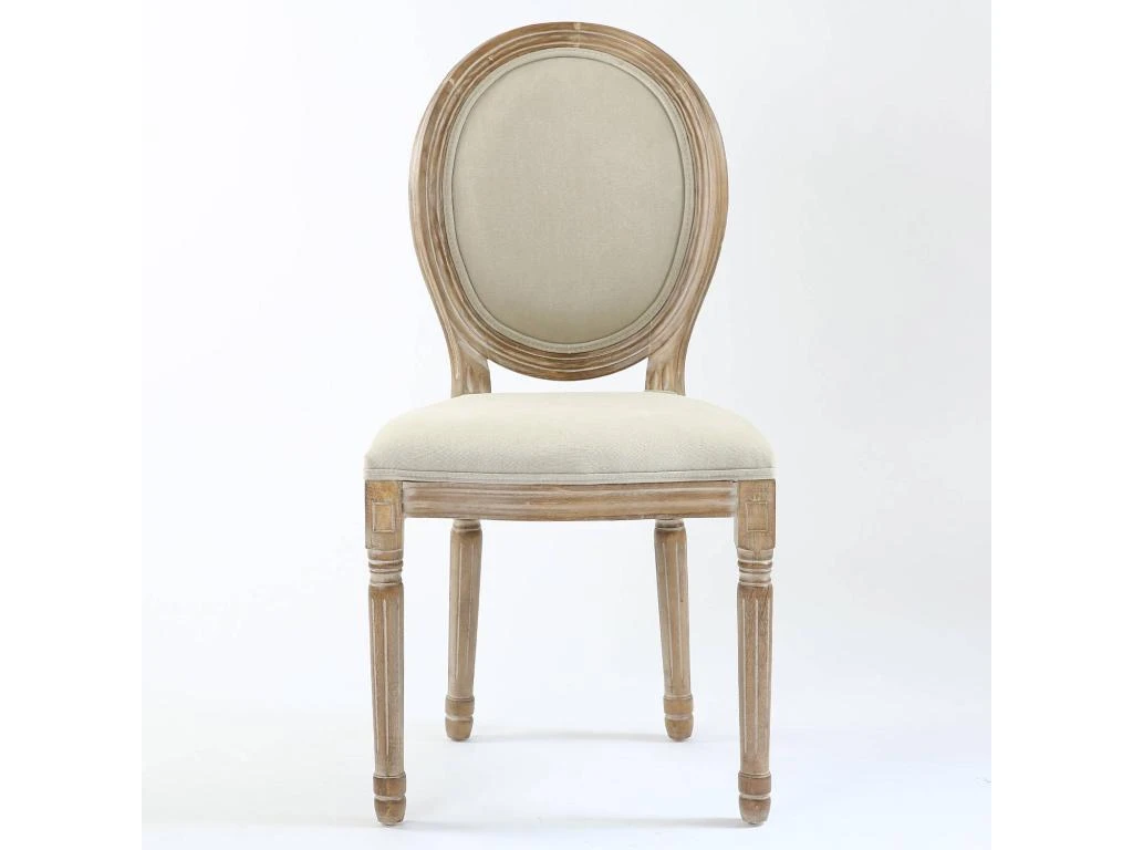 La chaise LOUIS XVI est une chaise de style médaillon de qualité supérieure, avec structure et pieds en bois légèrement cérusé. Son assise et son dossier revêtus d’un tissu résistant sont rembourrés et très confortables. Lot de deux chaises au design classique extra-chic, idéales dans un salon ou dans une salle à manger moderne.Catégories Associées :Chaise beige, Chaise bois