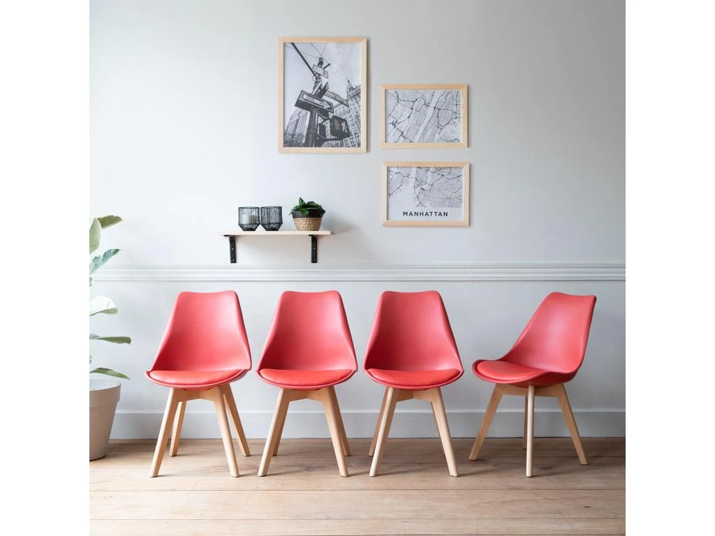 Le design scandinave dans votre intérieur est désormais possible grâce à ce lot de 4 chaises NORA. Vous succomberez à ces courbes tendances et son côté vintage. Son piétement en bois massif et sa coque en plastique avec un coussin vous apporteront un grand confort lors de vos dîners en famille ou entre amis. Craquez pour notre modèle de chaise scandinave NORA qui donnera du charme à votre décoration.