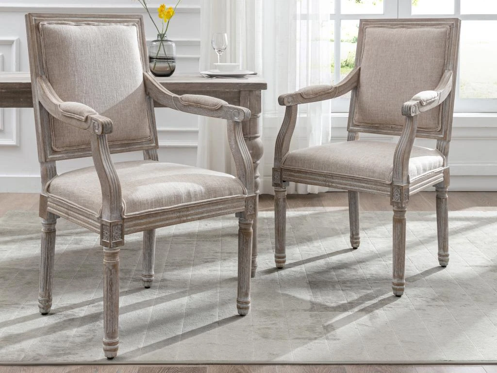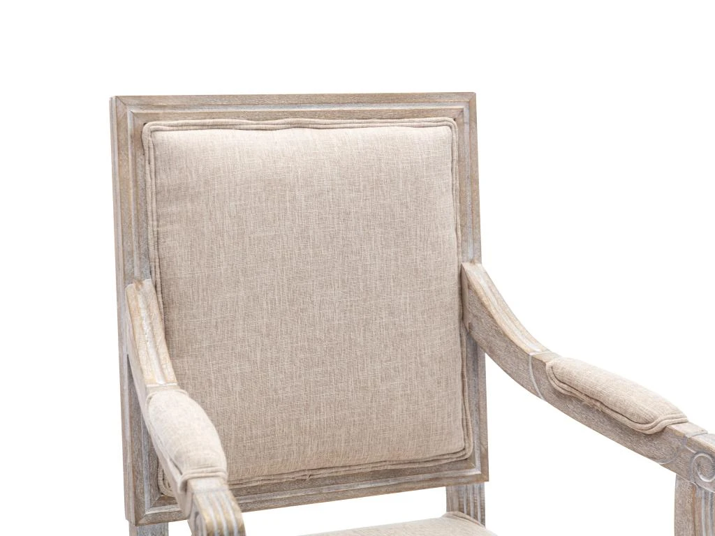 La chaise avec accoudoirs AMBOISETTE au style ancien, s’accordera aussi bien avec du mobilier ancien que contemporain. Le mélange du tissu et du bois d’hévéa apportera élégance et authenticité à votre intérieur. Avec son dossier rectangulaire, et son assise rembourrée, cette chaise vous apportera un maximum de confort.