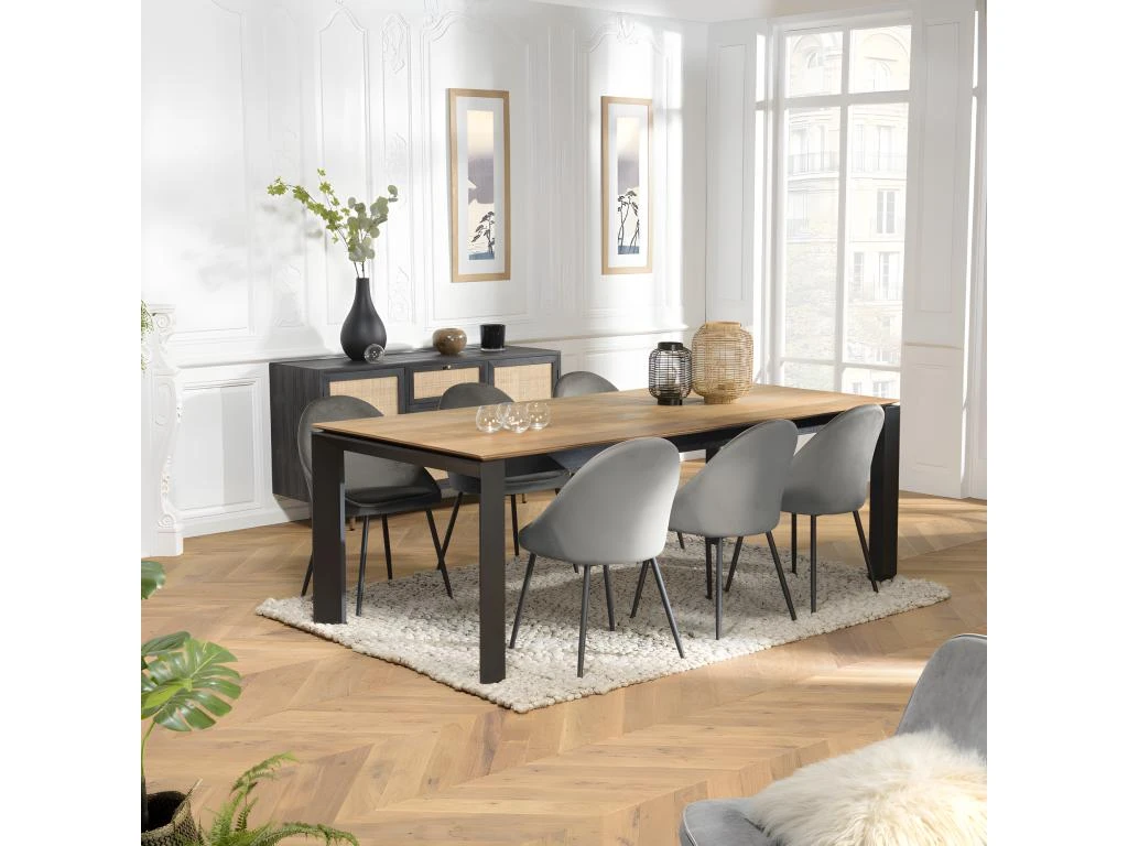 Naila Table De Salle à Manger 80 X 150 Avec Plateau En Bois Blanc Et Un Cadre En Chêne Massif.