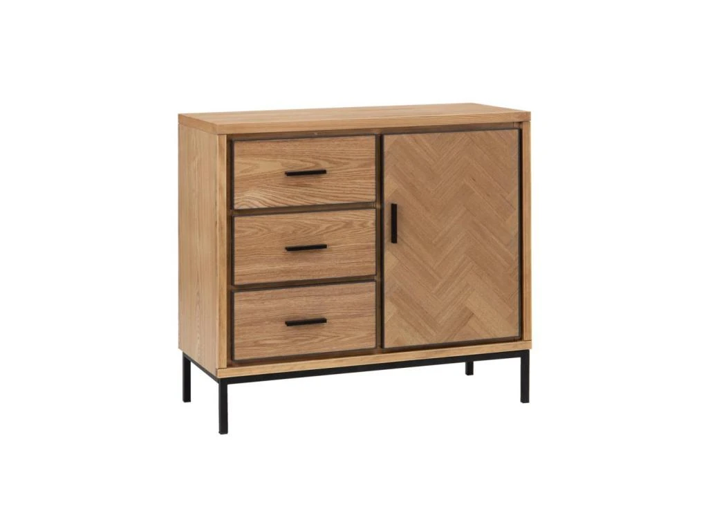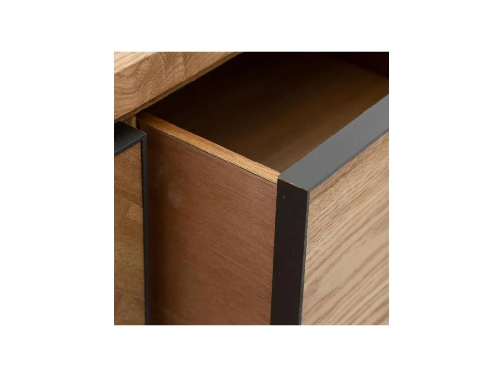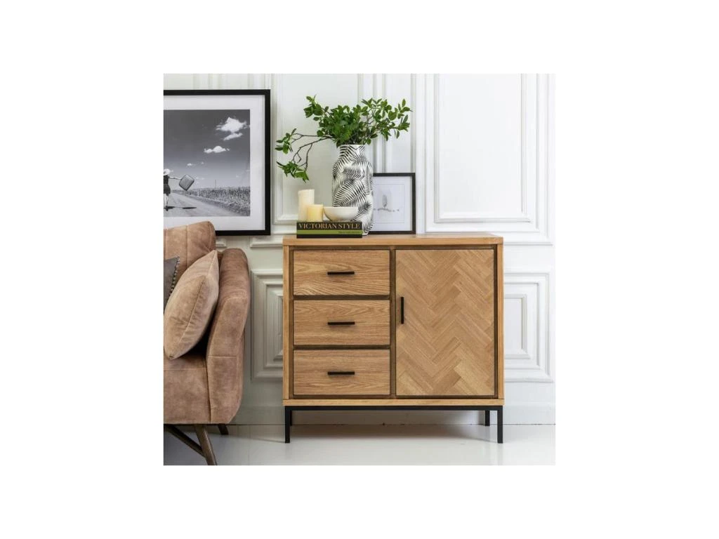 Reposant sur un piétement métal laqué noir assorti aux poignées, ce meuble de complément saura faire entrer la tendance mobilier Industriel dans votre déco tout en offrant une logeabilité satisfaisante.