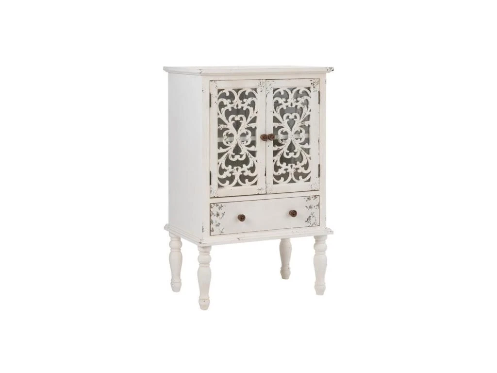 Très nettement inspiré de la tendance Shabby chic ce meuble de complément réalisé en bois de Pin propose un design emprunt de classicisme remis au goût du jour grâce à une patine copie d’ancien.