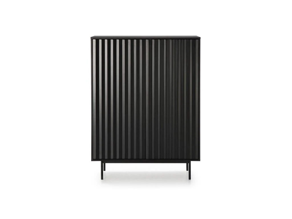 Une laque noire revêt l’ensemble du meuble pour un fort impact visuel dans votre déco et une intégration aisée au sein de tous les codes couleurs. Mention spéciale pour le design graphique de la façade de ce meuble bénéficiant du coup de crayon d’un architecte designer inspiré.