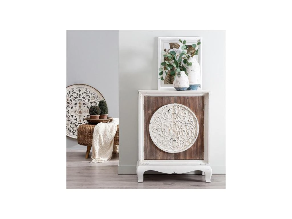 Inspiration des meubles ethniques et design au goût du jour pour ce meuble d’entrée 2 portes au potentiel décoratif exceptionnel.