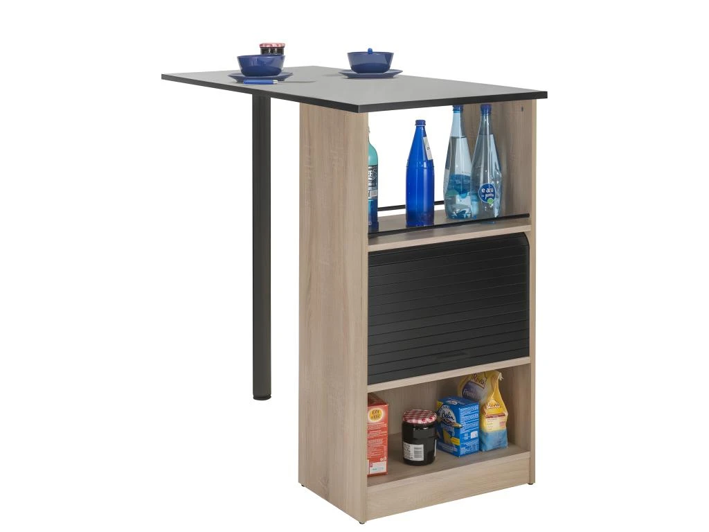 Meuble Rangement de Cuisine Coloris Chêne Naturel avec Table et Pied Métal