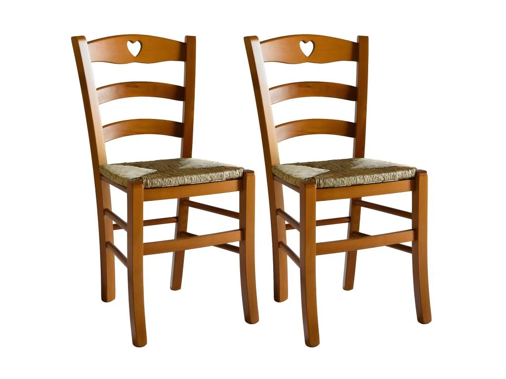 Lot de 2 Chaises Teinté Chêne et Assises en Paille de la gamme Naples.