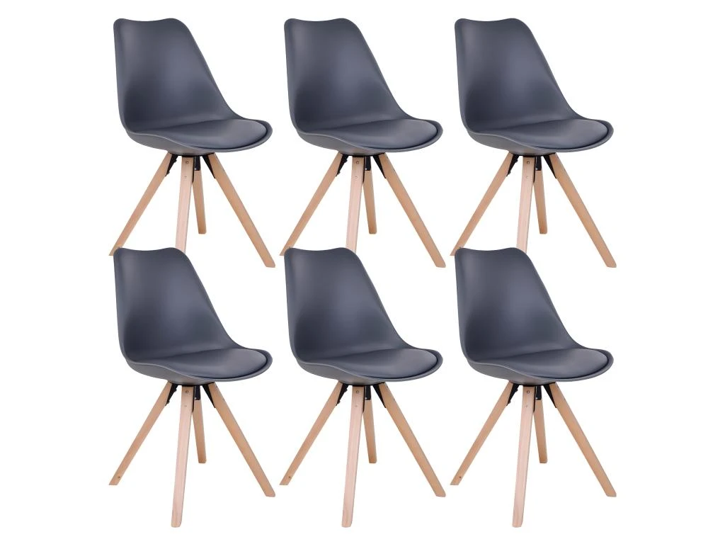 Lot de 6 Chaises Grises et Piétement Hévéa de la gamme Nibben.