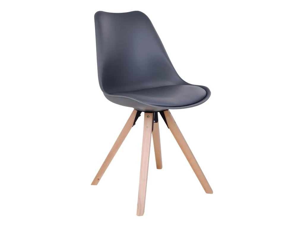 Piétement en hévéa massif naturel. Coque en plastique rigide. Galette revêtue de simili cuir.