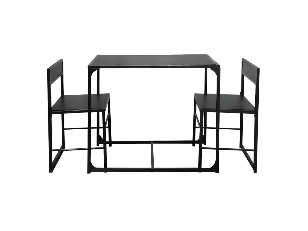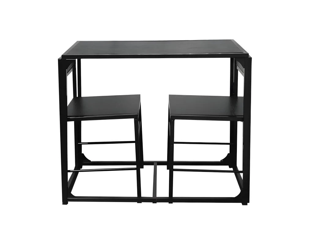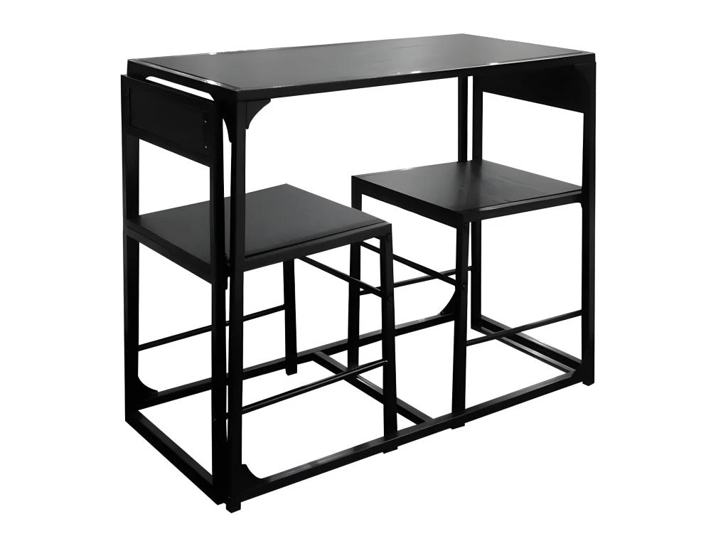 Idéal pour un studio, une kitchenette ou un logement étudiant. Ce set composé de 2 chaises et 1 table vous permettra de profiter de bon repas à 2 personnes tout en économisant une place importante. D’un design sobre et moderne, cet ensemble table + 2 chaises s’adaptera à tout type d’intérieur et se fera discret avec son coloris noir.