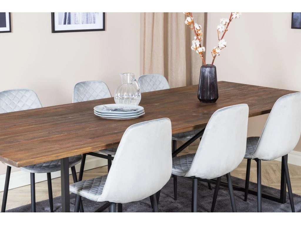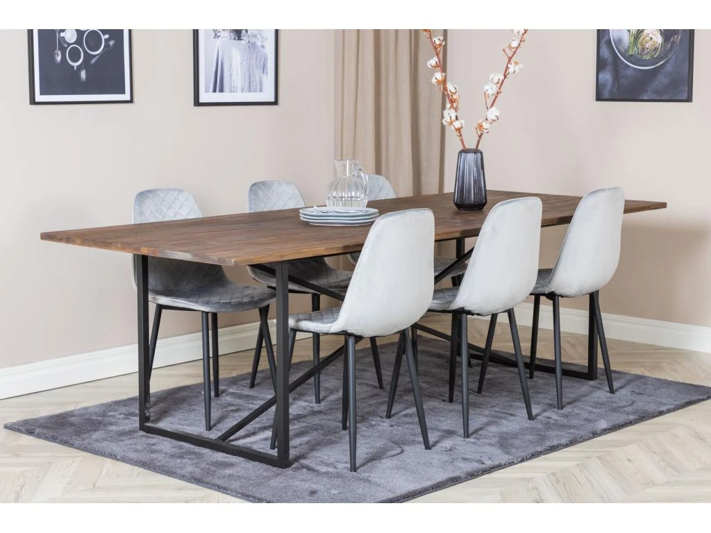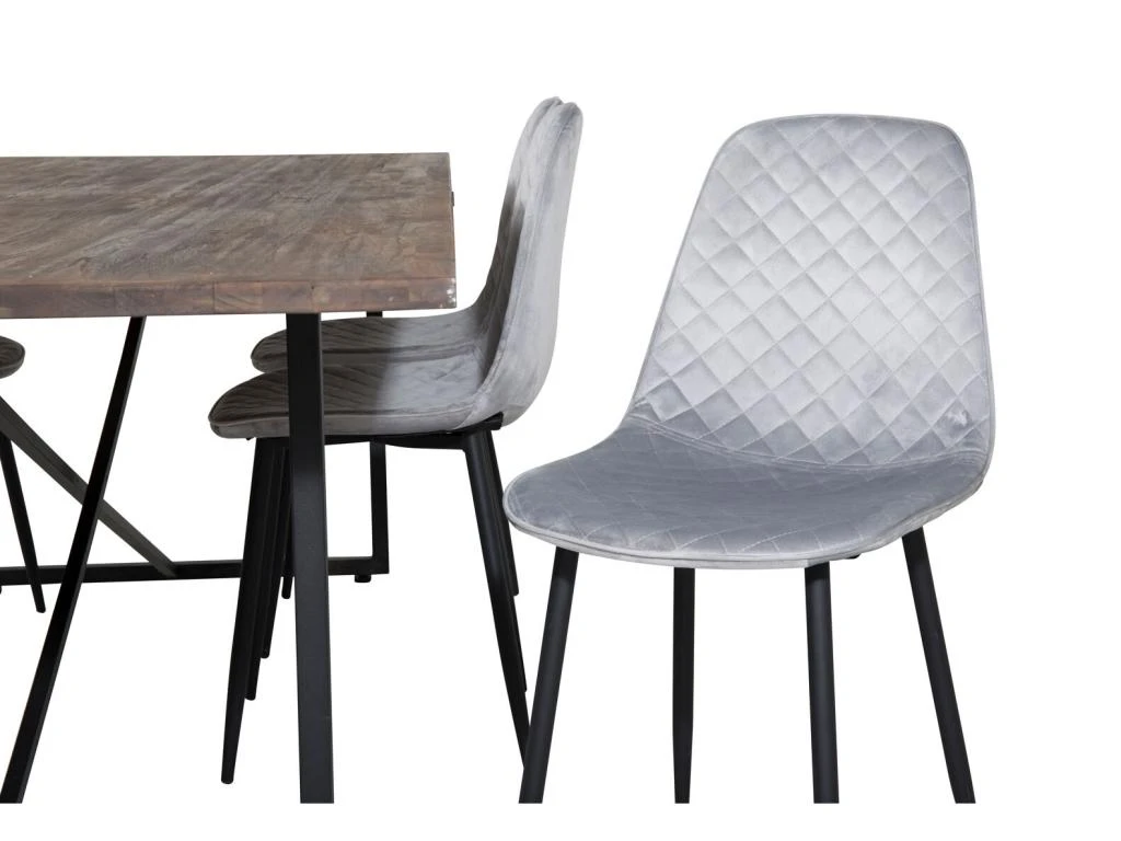 BiancaROWW Ensemble Table, Table Chêne Plaqué Blanc Washed Et 4 Emma Chaises Velours Gris,noir.