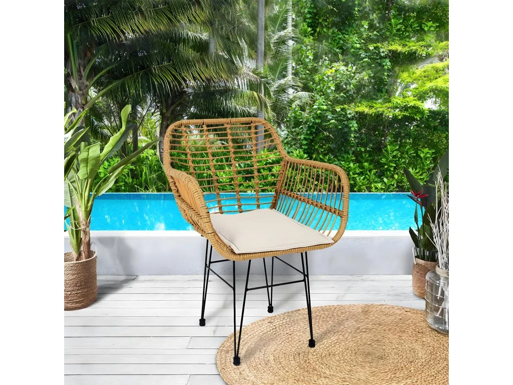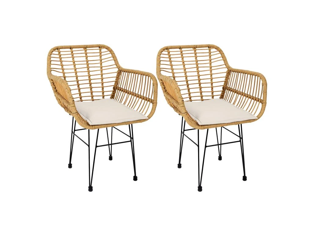 Lot de 2 Fauteuils Tressées Marron avec Pieds Métal de la gamme Pataya.