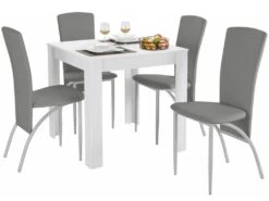 Leif Ensemble Table, Table Enfumé Verre Et 4 Emma Chaises Velours Gris,noir.