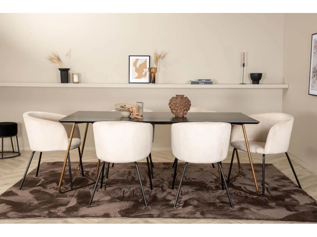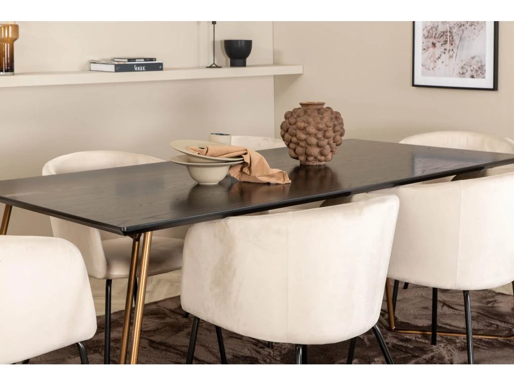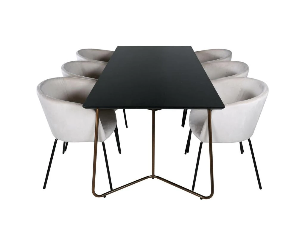 MarinaBLBL Ensemble Table, Table Noir Et 6 Polar Chaises Velours Gris.