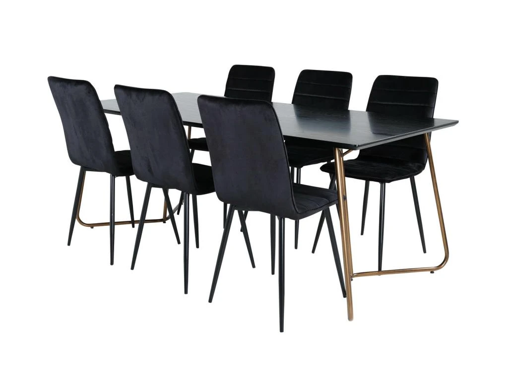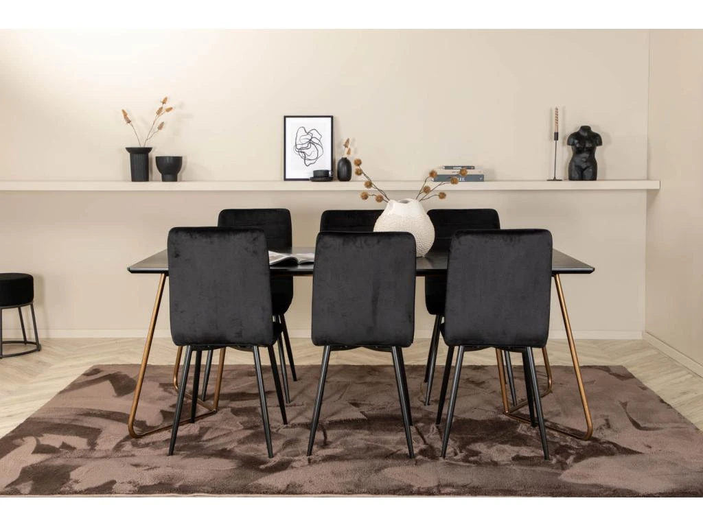 Skate Ensemble Table, Table Noir Et 4 Berit Chaises Velours Beige.