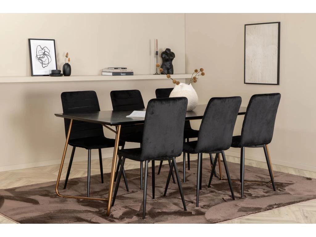 PiazzaBLBL Ensemble Table, Table Noir Et 6 Tvist Chaises Similicuir PU Noir.