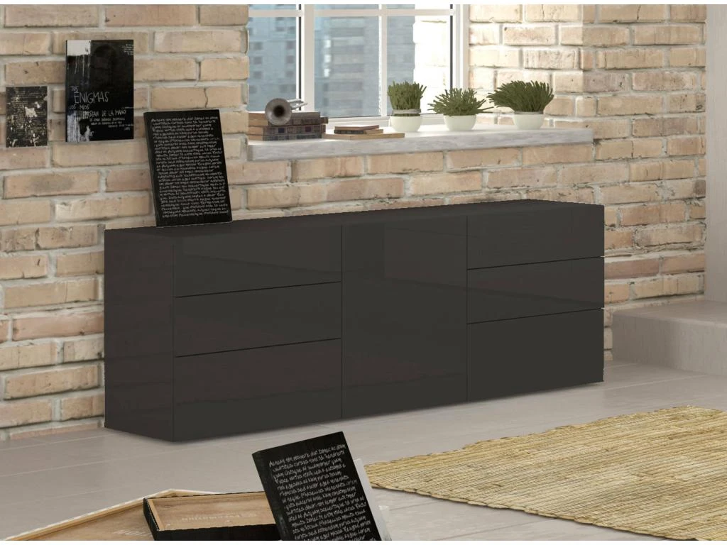 STRUCTURE ET UTILISATION – Meuble de salon pratique et peu encombrant structurĂ© avec une porte centrale battante et six tiroirs, Ă l’intĂ©rieur avec une Ă©tagère confortable – Les portes et les tiroirs sont sans poignĂ©es, tous deux Ă©quipĂ©s de charnières solides et de guides mĂ©talliques – L’Ă©tagère supĂ©rieure est parfaite pour accueillir votre tĂ©lĂ©viseur ou vos bibelots prĂ©fĂ©rĂ©s.