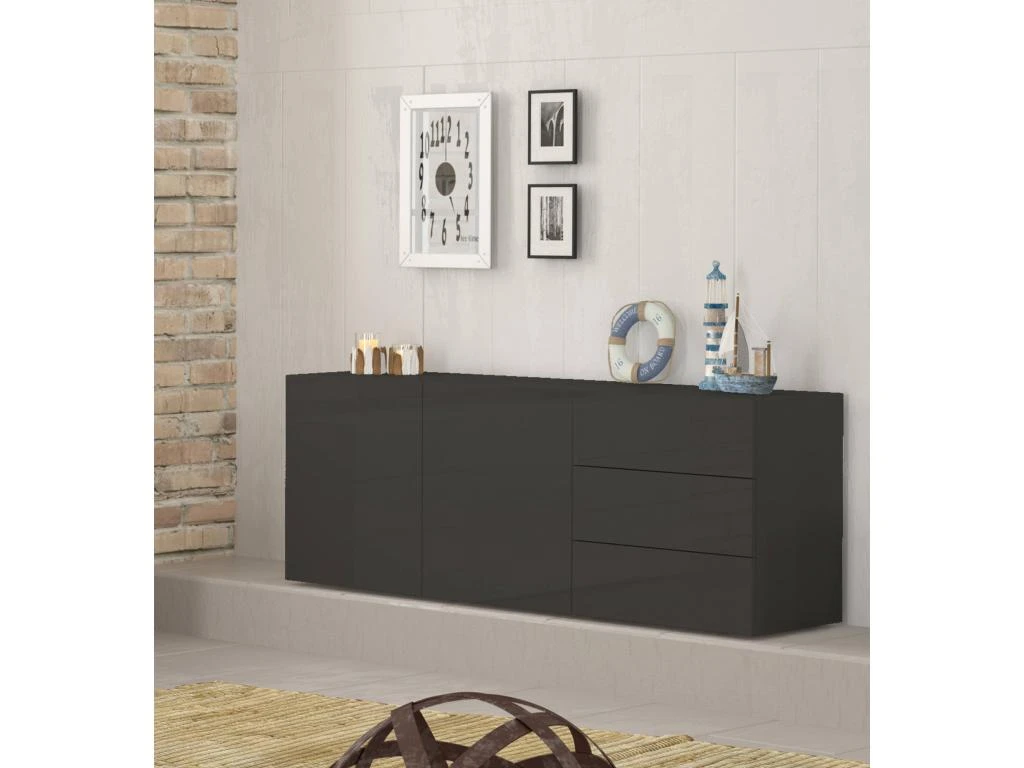 STRUCTURE ET UTILISATION – Buffet de salon pratique et peu encombrant structuré avec deux portes battantes, des compartiments internes et trois tiroirs sur le côté droit – Les portes et les tiroirs n’ont pas de poignées, tous deux équipés de charnières solides et de guides métalliques – La structure est entièrement en blanc brillant – L’étagère supérieure est parfaite pour ranger votre téléviseur ou vos bibelots préférés.